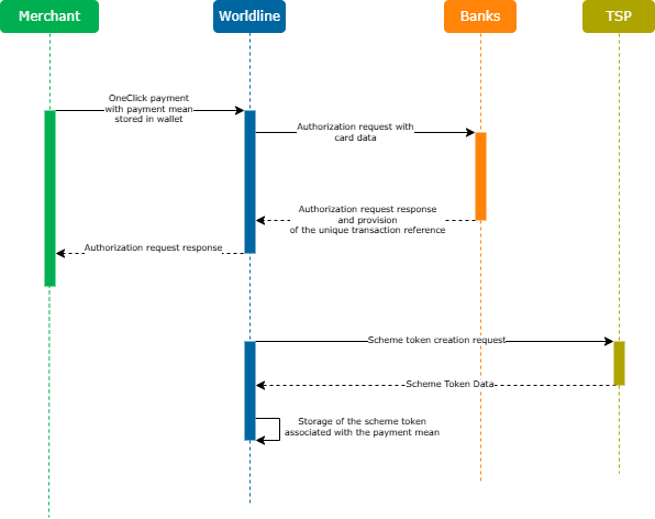 Here is the diagram of scheme tokenization after a transaction with a payment mean from a wallet :