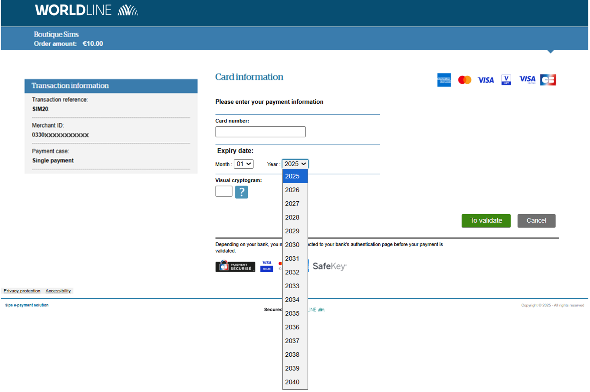 In order to accept payment cards with expiry dates beyond 10 years, the expiry year input field has been extended from ‘current year + 10’ to ‘current year + 15’. The applications affected are Paypage and Wallet Page.