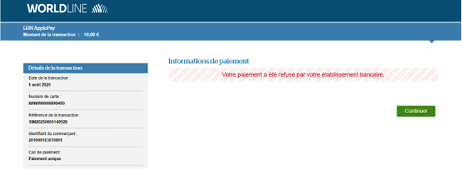 À partir de cette release, pour tous les refus liés aux contrôles de fraude, le message affiché sur la page Sips « votre paiement a été refusé par votre établissement bancaire » sera remplacé par « votre paiement a été refusé ».