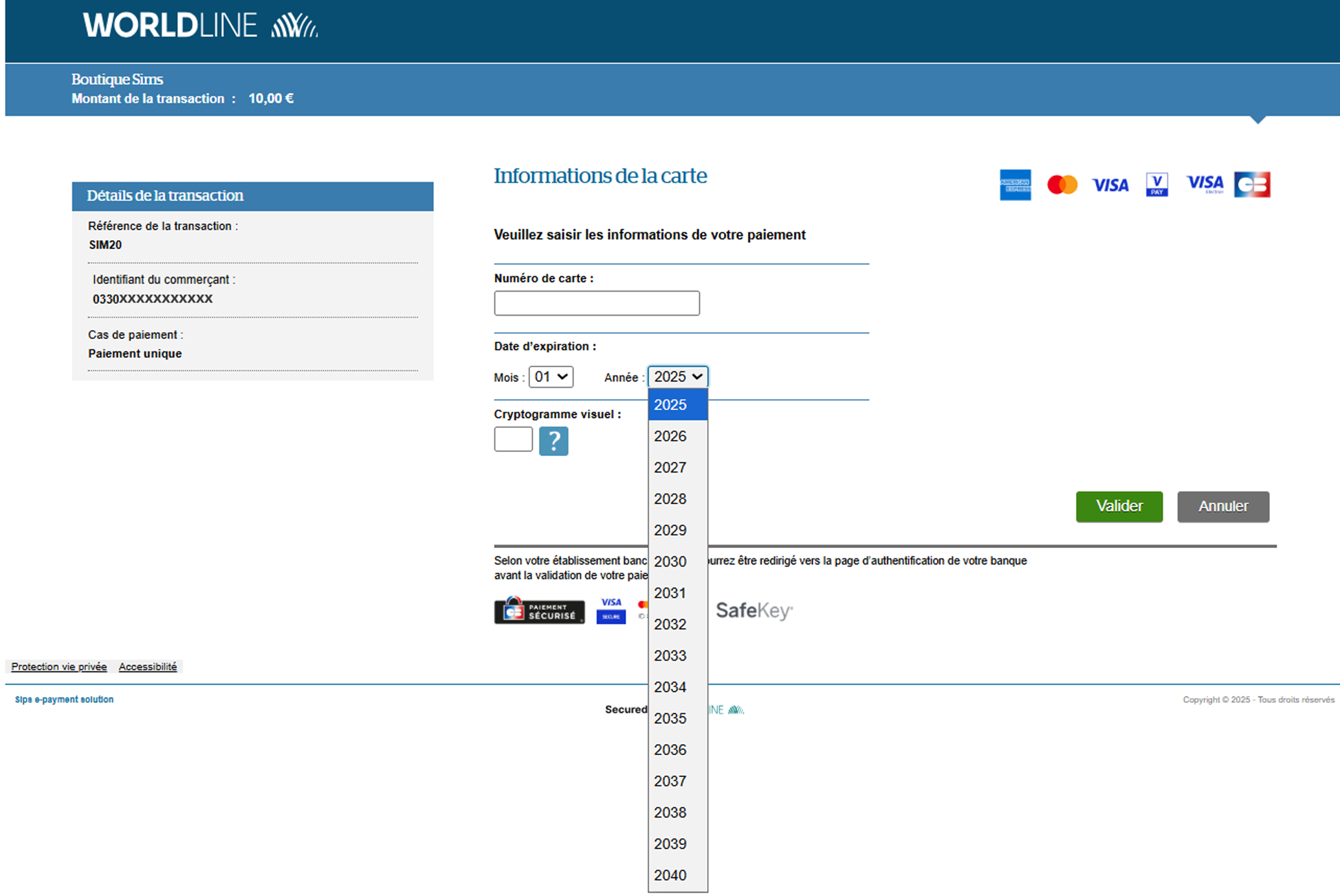 Afin d’accepter des cartes de paiement pouvant avoir des dates d’expiration au-delà de 10 ans, le champ de saisie de l’année d’expiration a été étendu de “année en cours + 10” à “année en cours + 15”. Les applications concernées sont Paypage et Wallet Page.