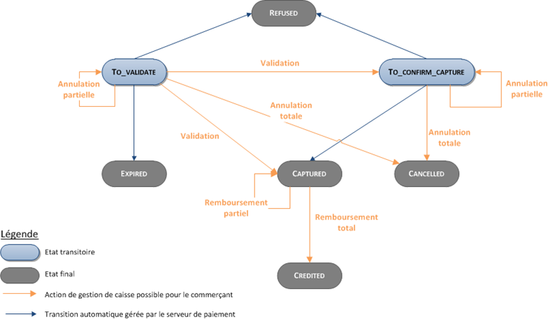 Afin d’être conforme aux spécifications du moyen de paiement ONEY 3X 4X et PAYLATER, le diagramme des états de la transaction évolue ainsi que celui des opérations de gestion de caisse.